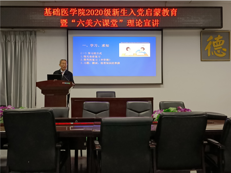 2020年11月10日,足球资讯 2020级新生入党启蒙教育暨“六美六课堂”理论宣讲在学院道德讲堂顺利举行。此次讲座由荣誉“福建省首届最美教师”称号的足球资讯 人体解剖学系王玮教授主讲,2020级全体新生参加。