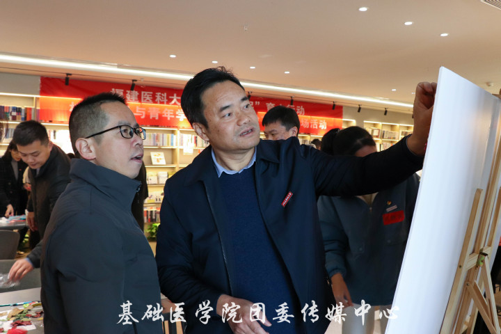 12月27日上午,由校团委主办,足球资讯 团委和文理艺术学院团委共同承办的,“六个一起”校院领导与青年学生“一起体验艺术”专场活动在大梦书屋热烈开展。本次活动的主题是:叶传医史,艺暖福医。莅临本次活动的领导有校党委书记陈晓春教授,校党委副书记、校长林旭教授,校党委副书记黄爱民教授,相关部处学院领导老师。