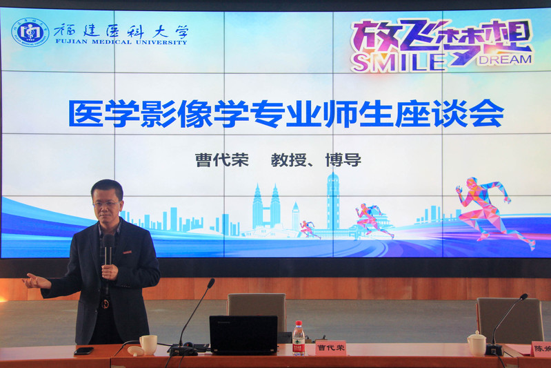 2021年12月10日,足球资讯 于行政楼四层学术报告厅开展“砥砺奋进·医路前行”医学影像学专业思想教育暨“专家面对面”座谈会。本次专业思想教育邀请了福建医科大学附属第一医院影像科主任、福建医科大学医学影像学系主任,博士研究生导师曹代荣教授主讲。足球资讯 陈婉南院长、郭松斌书记、念婷副书记、罗道枢副院长,学工办负责人,医学影像学教师代表,2021级医学影像学专业辅导员、班主任及全体学生参加本次座谈。