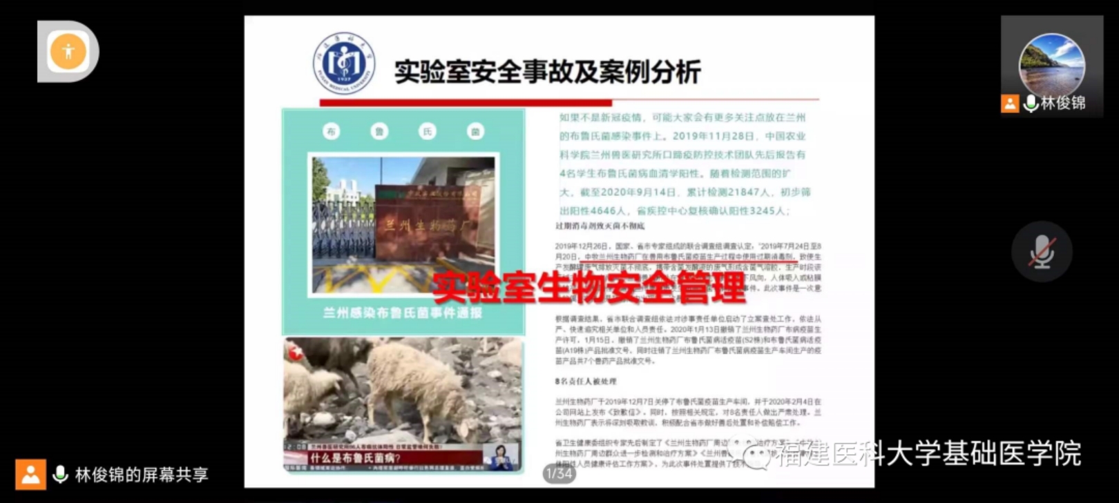 林俊锦老师以“医学实验室安全与操作规范”为主题,介绍了近几年国内外高校发生的各类实验室安全事故案例,然后结合学校的实际情况,以“实验室安全培训准入机制”为切入点,解读了福建医科大学实验室安全相关规定、实验室安全准入机制和《福建医科大学实验室安全考试系统》使用方法,最后为师生介绍了医学实验室安全基本知识和危化品采购流程及管理。
