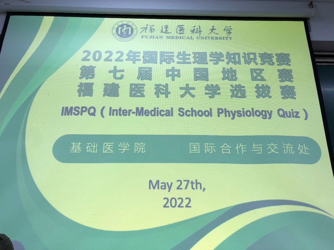 国际生理学竞赛(Inter-medical school physiology quiz, IMSPQ)是针对医学生的一项国际赛事,致力于为生理学教师和医学生搭建交流平台,使参赛教师和学生相互交流教学和学习经验,讨论生理学疑难问题。2022年国际生理学知识竞赛第七届中国地区赛由国际生理学竞赛组委会、徐州医科大学和江苏省生理科学学会联合主办。