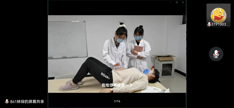 首先,主持人介绍了本次大赛的流程以及到场的评委老师。接着,进入复赛的九支队伍从“远程医疗”和“心脏检查/胸部检查/腹部检查”两大主题分别阐释了队伍对主题的理解、剧情内容概括和活动感悟,并进行情景剧作品的展示。每支队伍展示完毕,评委老师对他们作品及表现进行了点评。各支队伍的作品中展示了相关疾病介绍、致病机制,诊疗方案及预防措施等相关医学知识,表演者表达自然流畅,配合默契,并达到宣教目的。最后,由评委老师进行总结与展望。本次大赛评选出一、二、三等奖和优秀奖,由闵蓝朵同学带领的九号队伍获得一等奖。
