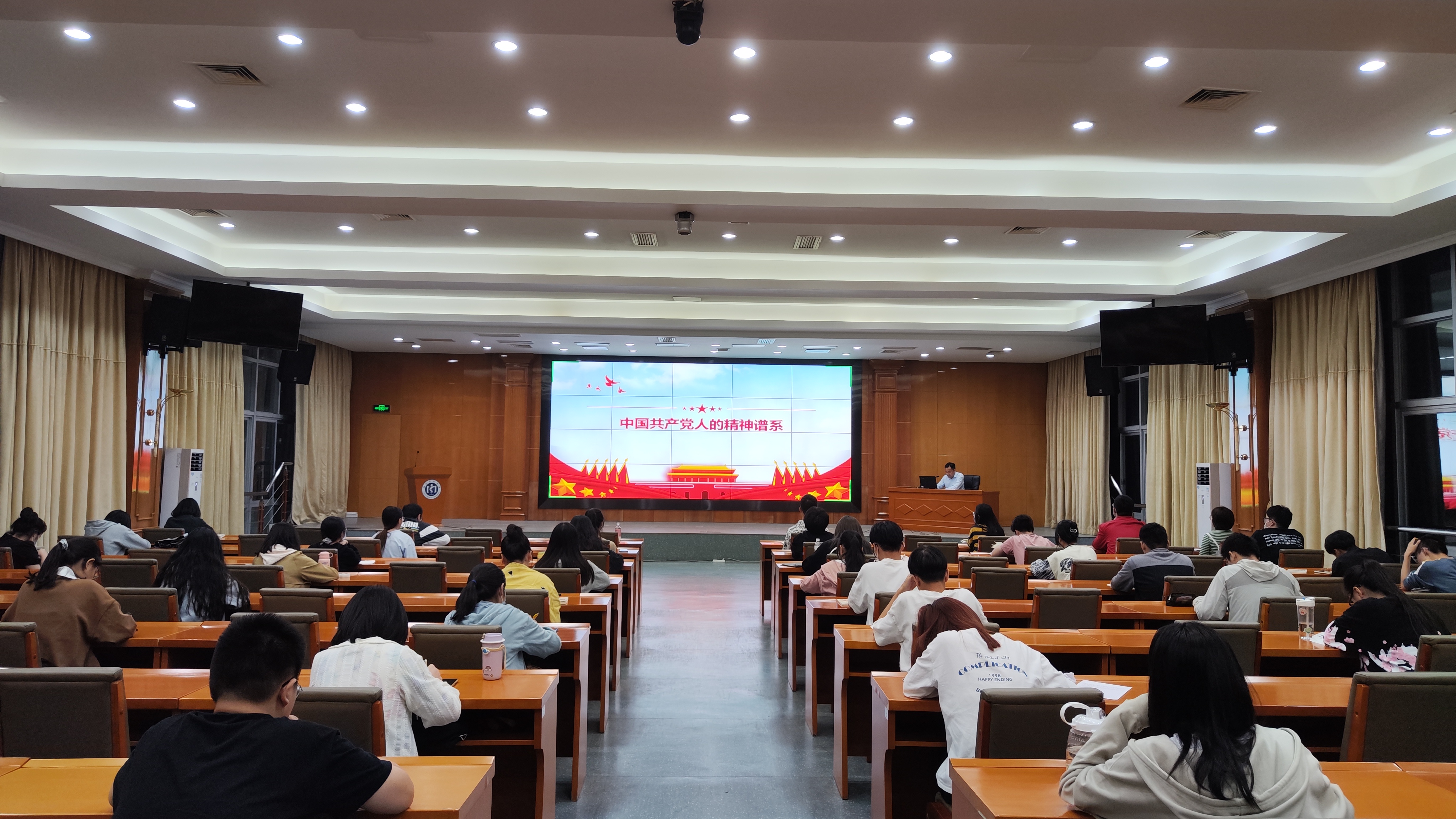 2022年10月17日,足球资讯 党委郭松斌书记于行政楼B座学术报告厅为足球资讯 本科新生讲授“筑牢信仰之基,把稳思想之舵”主题党课,2022级全体本科新生参与。