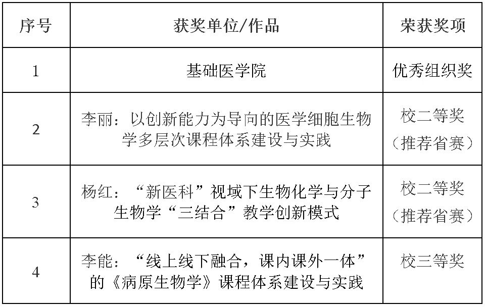 2023年1月9日,福建医科大学第三届教师教学创新大赛获奖名单公布,足球新闻最新 荣获二等奖2项、三等奖1项和优秀组织奖1项,其中参赛教师李丽和杨红两位讲师获推荐代表我校参加第三届福建省高校教师教学创新大赛。