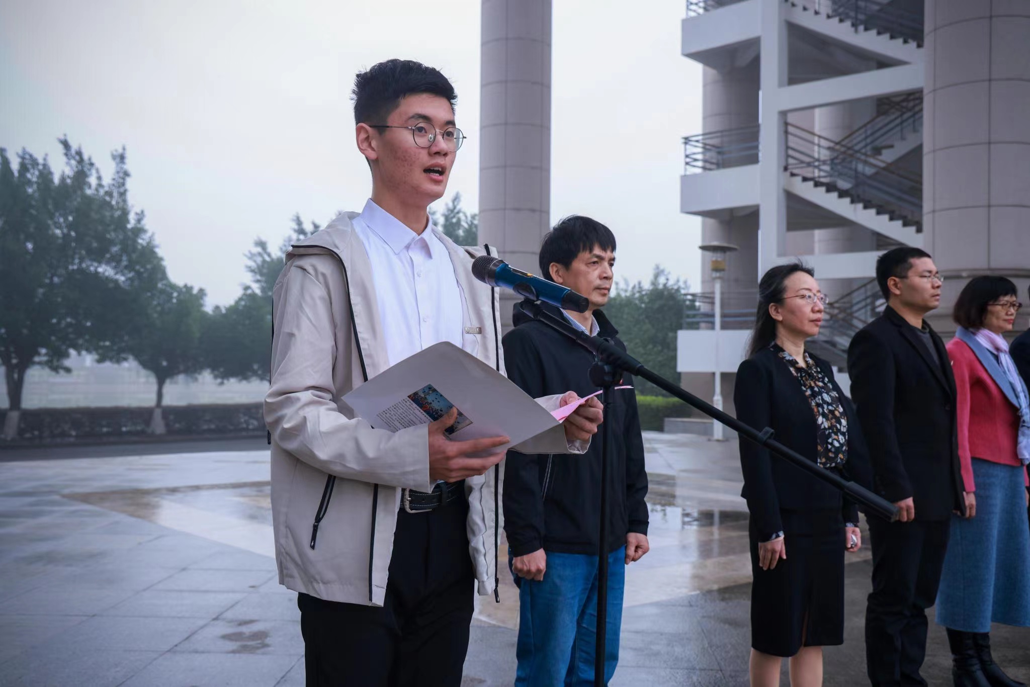 最后,学院党委书记郭松斌老师代表学院领导进行国旗下讲话。进入新学期,站在新的历史起点上,郭书记向全体同学提出了三点期望,一要胸怀理想,继续发扬福医人优良的爱国传统和深厚的家国情怀,坚定信念跟党走。二要勤学善思,始终秉持校训和学风,用扎实的知识储备提升涵养,用丰富的社会实践锤炼本领。三要踏实奋斗,更加珍惜时光、赓续荣光,以奋斗姿态激扬青春,成就最好的自己。