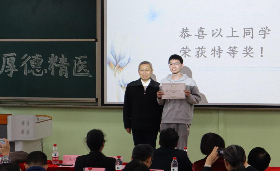 王玮老师为荣获解剖绘画大赛特等奖的同学颁奖