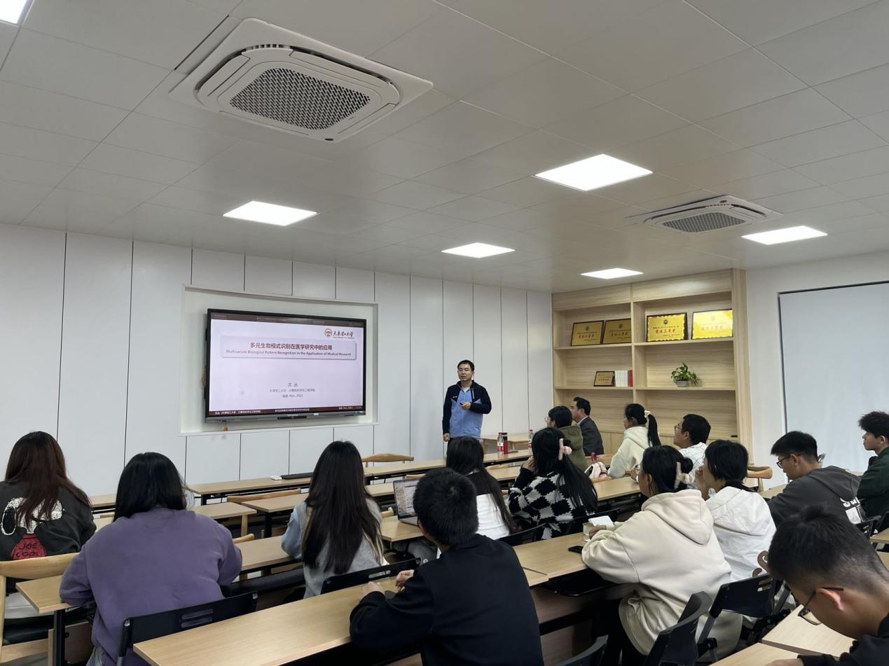 我院2023年11月16日邀请天津理工大学沈丛博士来校作题为“多元生物模式识别在医学研究中的应用”的精彩报告,本次讲座由廖之君教授主持,学院30余名师生参加。
