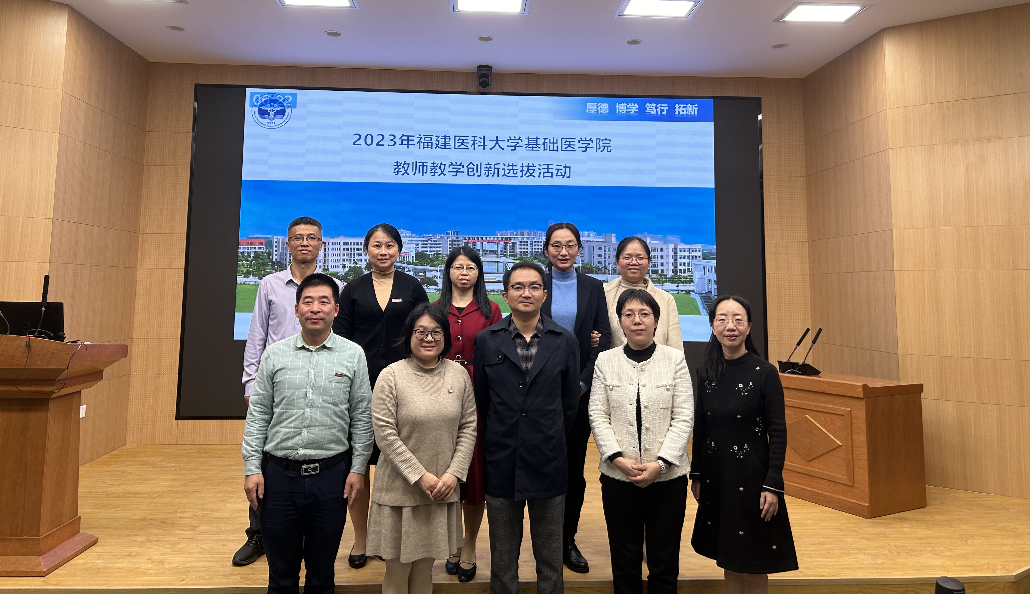 此次选拔活动包括网络评审和现场评审两个环节,分为课程思政组、副高组和中级及以下三个组别进行,邀请我校医学技术与工程学院教学科研办公室主任徐建萍教授、福建农林大学农药学与制药工程系主任黄彬彬副教授和福建省中医药大学药学院张勋副教授担任评委。三位评委在国家级、省级高校教师教学创新比赛均斩获诸多奖项,并且具备丰富的课程思政项目和案例建设经验。在前期网络评审阶段,评委组对各位选手提交的申报书、教学大纲、课程教学创新成果报告、支撑材料目录等材料进行网络评审,结合各位选手的现场汇报表现,经综合评价推荐5位教师参加校级教师教学创新大赛。