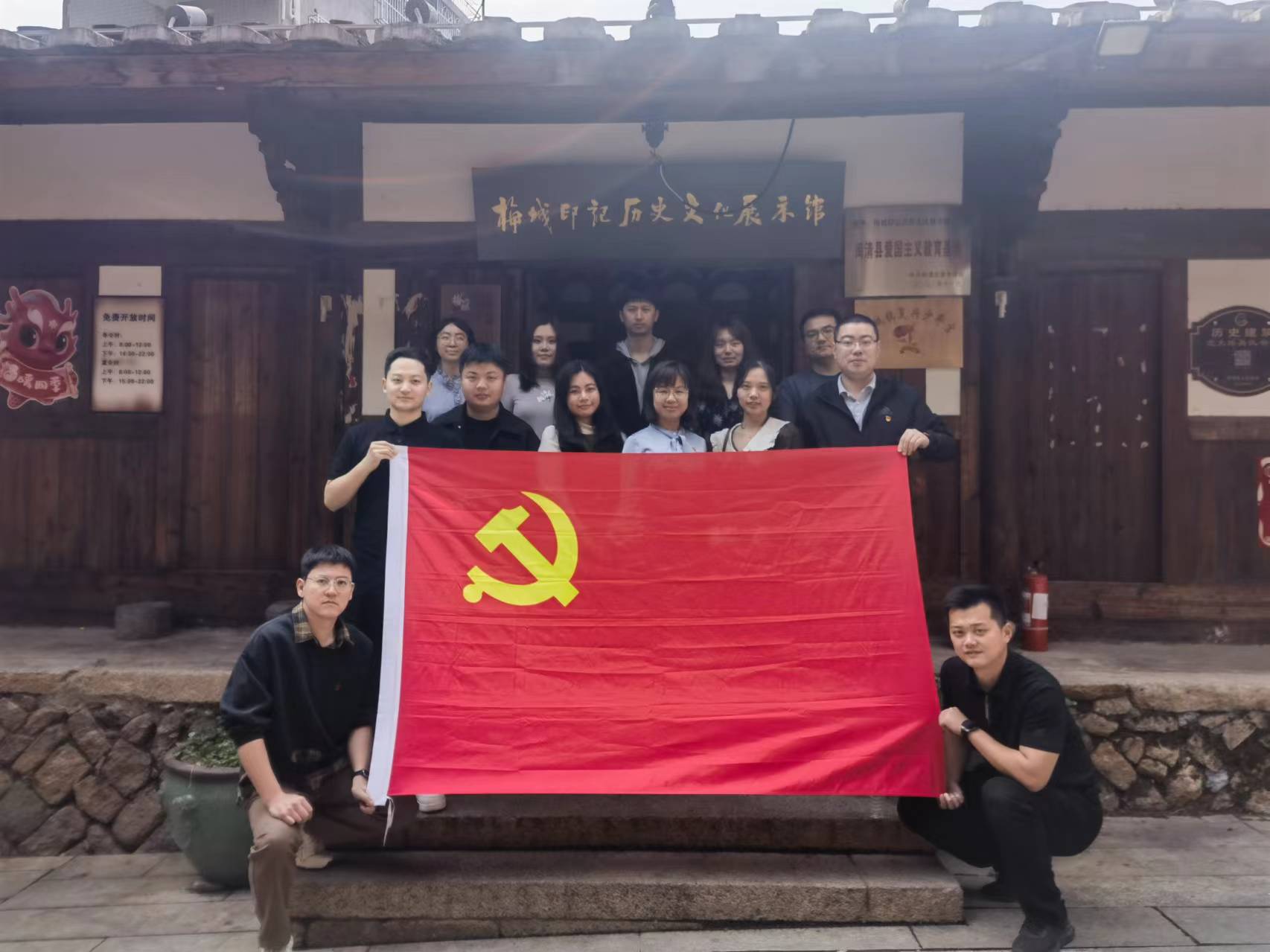 在梅城印记历史文化展示暨党员政治生活馆,大家徜徉在闽清历史文化的深厚底蕴中,深入学习革命战争年代中国共产党人利用闽清古民居、古建筑作为革命据点开展革命斗争活动。参观结束后,全体党员面向党旗,庄严宣誓,集体重温入党誓词。