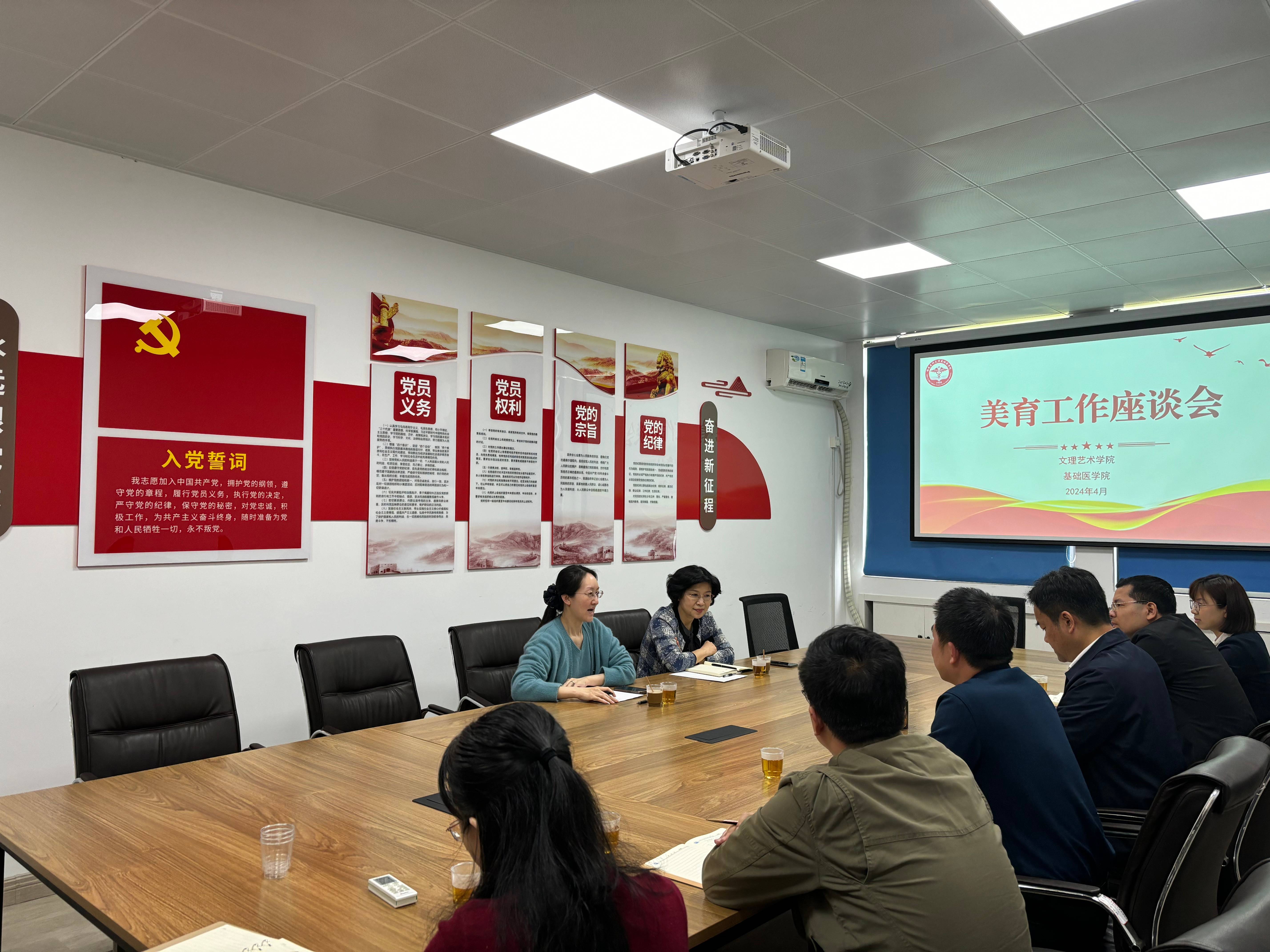 为贯彻落实习近平总书记关于教育的重要论述精神,进一步强化美育育人功能,改进提升学院美育工作,4月8日,文理艺术学院党委书记卢征、院长冯欣到足球新闻最新 开展美育工作交流座谈,学院领导班子成员、各办公室负责人参加了会议。会上,双方就美育课程建设、环境文化建设以及美育实践活动等问题展开了积极讨论并提出了意见和建议。双方就加强美育教育合作、创新美育实践活动形式、推动美育与专业教育融合等工作达成了共识。这次座谈会为学院美育工作带来了新思路,拓宽了新视野,提供了新路径,对学院加强美育工作具有重要意义。