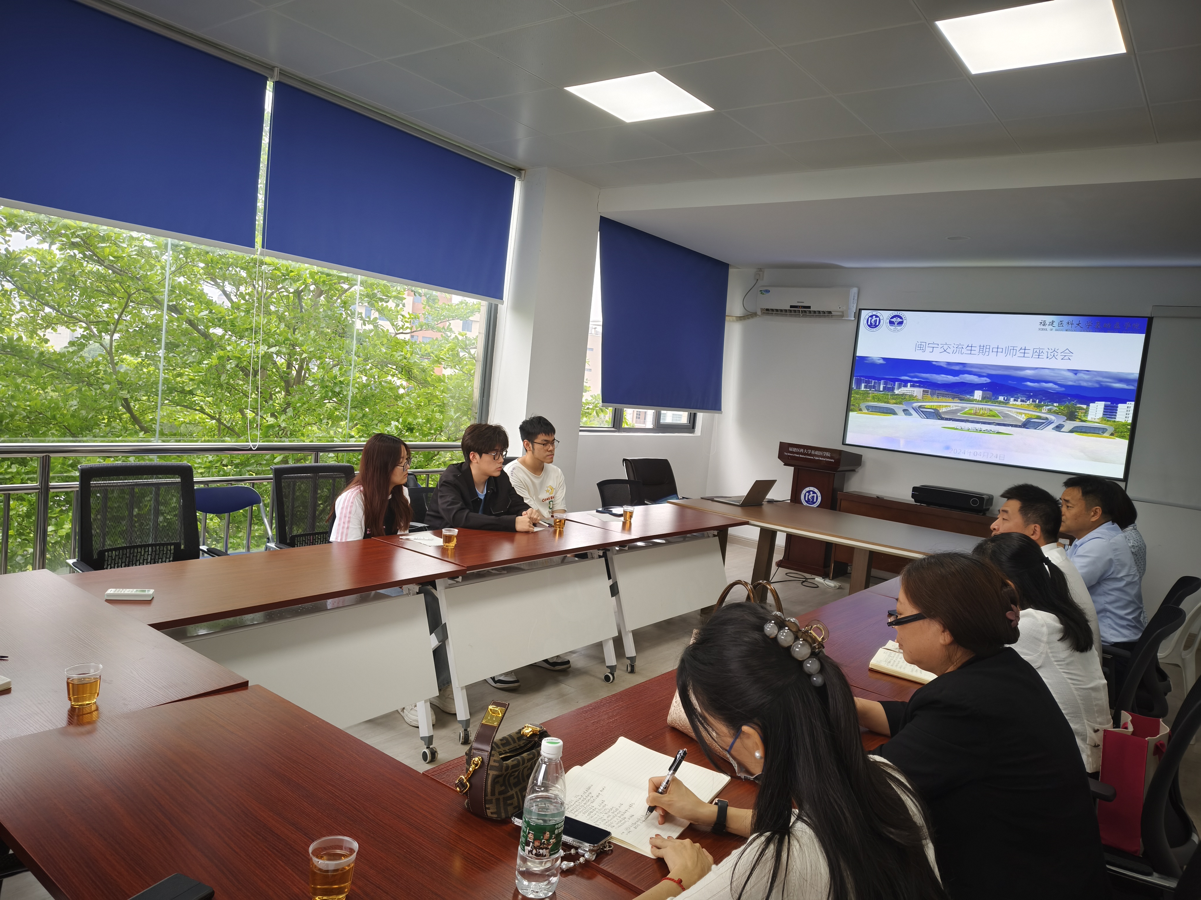 为进一步关心和了解宁夏医科大学交流生在我校的学习和生活情况,足球资讯 于4月24日下午在旗山校区组织召开了闽宁交流生期中师生座谈会。足球资讯 党委书记郭松斌、副院长罗道枢、宁夏医科大学足球资讯 来闽交流学生、相关课程负责人、教科办、学工办等部门负责人和辅导员共同参会交流。
