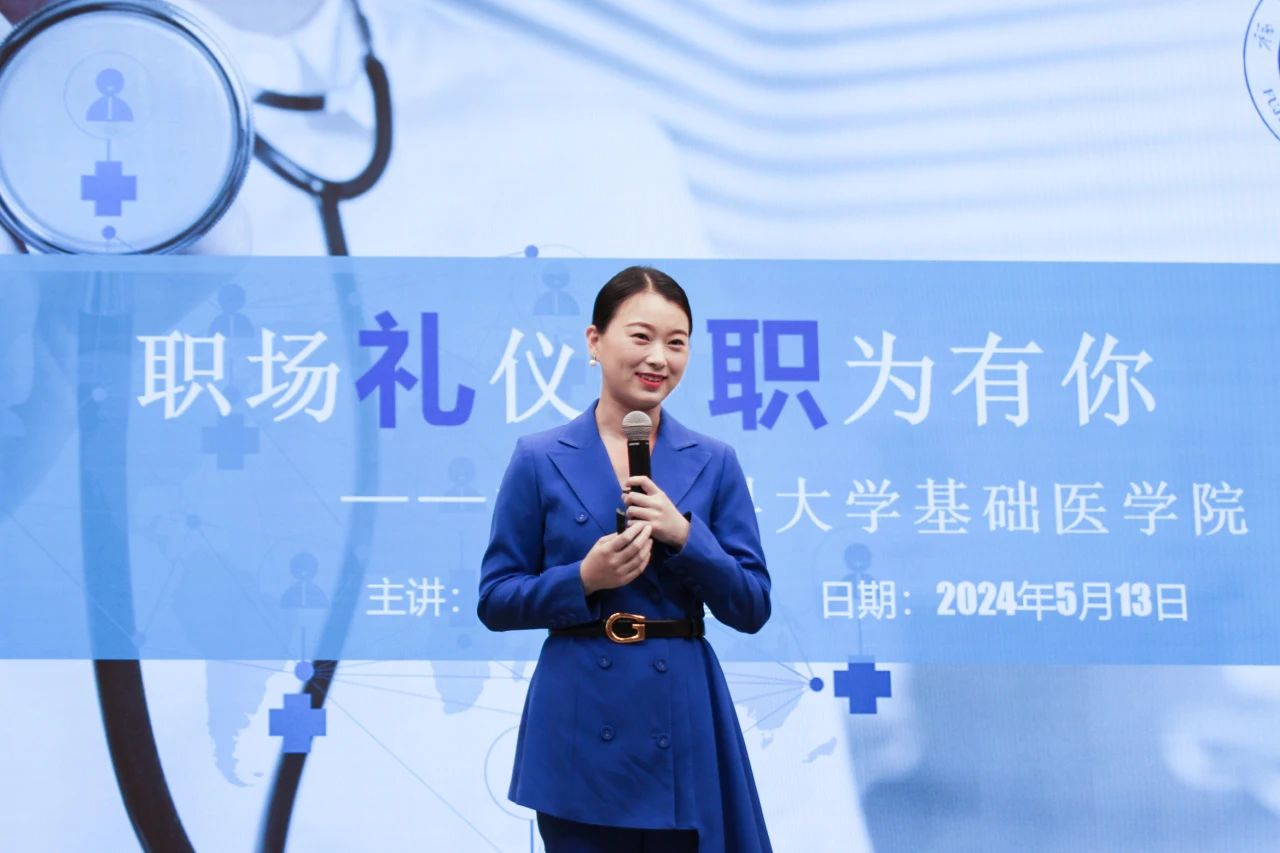 本次活动邀请到了资深讲师王清老师,她以其丰富的职场经验和深厚的礼仪知识,为在场的足球资讯 辅导员及百余名学生进行了精彩的培训和分享。王清老师以中国传统文化中的“不学礼,无以立”为引,从“礼从何来”、“面试礼仪”、“会务接待礼仪”三个方面进行介绍。