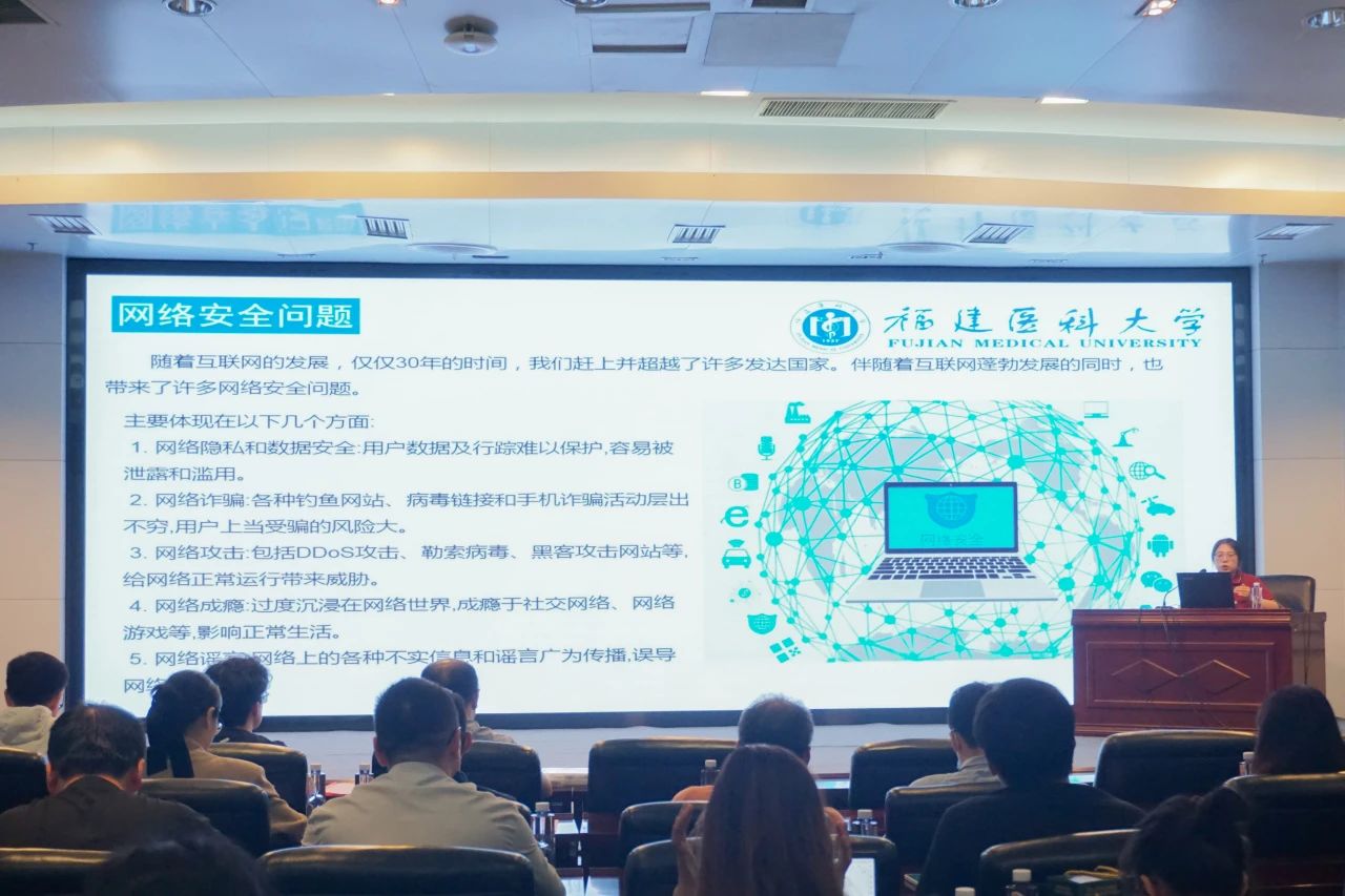 会议指出,网络安全为人民,网络安全靠人民,要深入贯彻落实习近平总书记关于网络安全的重要论述和指示精神,切实增强广大师生党员的网络安全意识,引导师生党员树立正确的网络安全观,营造安全、健康、文明的网络环境。随后,师生共同聆听了《贯彻总体国家安全观,共筑网络安全防线——懂网、用网、护网》主题讲座,学习文明上网相关知识,对提高师生党员网络安全素养,维护学校网络环境安全稳定具有重要意义。