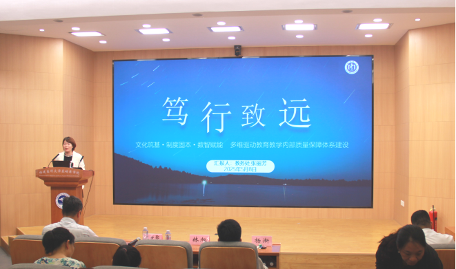 教务处张丽芳副处长做了关于《笃行致远 教学质量保障多维驱动:文化筑基·制度固本·数智赋能》的报告,围绕评教制度革新、评学体系升级、听课制度深化、教学事故防控等核心内容,以文化浸润、制度约束、数智赋能为抓手,构建“评价-反馈-改进-监督”质量闭环,形成多维驱动与协同治理深度融合的质量保障体系,为我校医学人才培养提供持续动能与制度支撑。