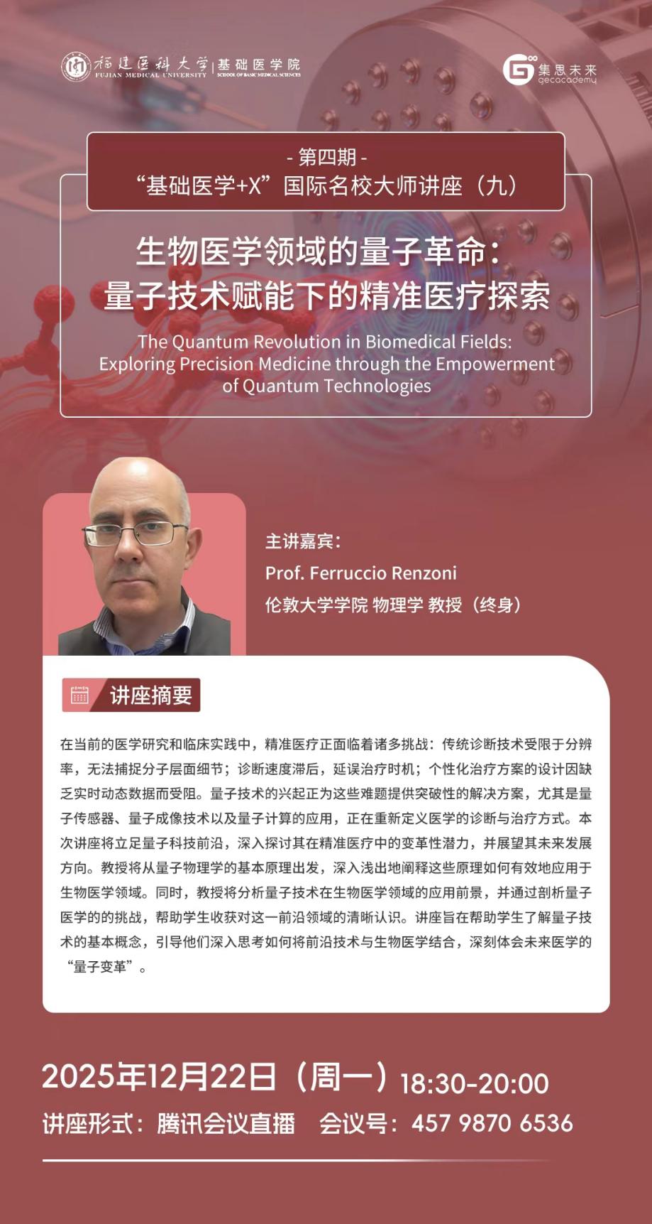 为促进学生了解以人工智能、大数据为代表的新一轮科技革命和产业变革下锚定基础医学疾病诊疗与研究的前沿研究方向与方法,探索医学与其他学科的交叉应用,培养国际化视野,探讨国际研究趋势和动态。足球资讯 联合天津集思教育集团继续开展第四期“基础医学+X”国际名校大师讲座,主讲嘉宾为来自全球一流高等学府和研究机构的9位知名教授。现将该系列讲座(九)相关信息发布见下: