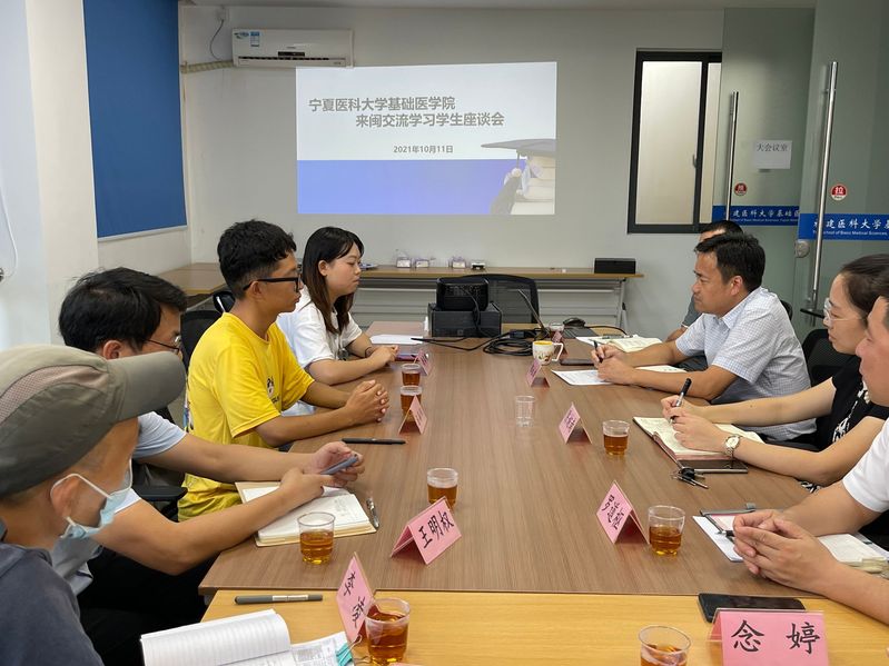 2021年10月12日,宁夏医科大学足球资讯 来闽交流学习学生座谈会,于足球资讯 4楼会议室顺利召开。足球资讯 院长陈婉南、党委书记郭松斌、党委副书记念婷、副院长罗道枢、副院长陶武成,学工办、教科办以及宁夏医科大学足球资讯 来闽交流学习学生参加了本次座谈会。会议由党委副书记念婷主持。