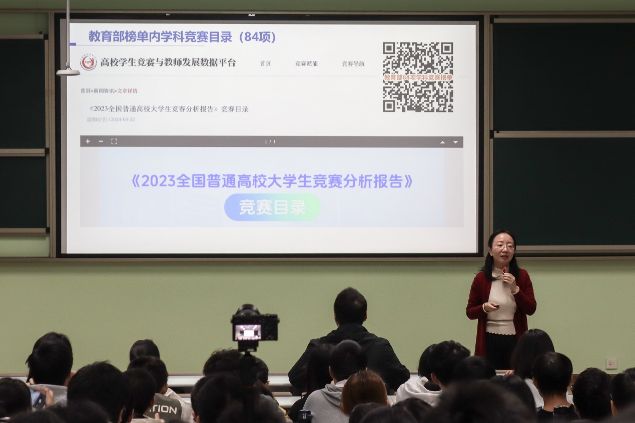 宋斌老师还重点介绍了全国大学生医学创新大赛暨“一带一路”国际竞赛、生命科学竞赛(科学探究类)(创新创业类)等适合医学生参与的教育部榜单内学科竞赛,特别是从参赛条件、提交材料、赛事侧重、备赛策略和我校近三年赛绩等维度进行介绍。她建议同学们将“大创B项目”科研实践与学科竞赛选题有机结合,以赛促学、科教融合,构建“基础-临床—科研”三位一体的知识体系,不断提升专业素养。