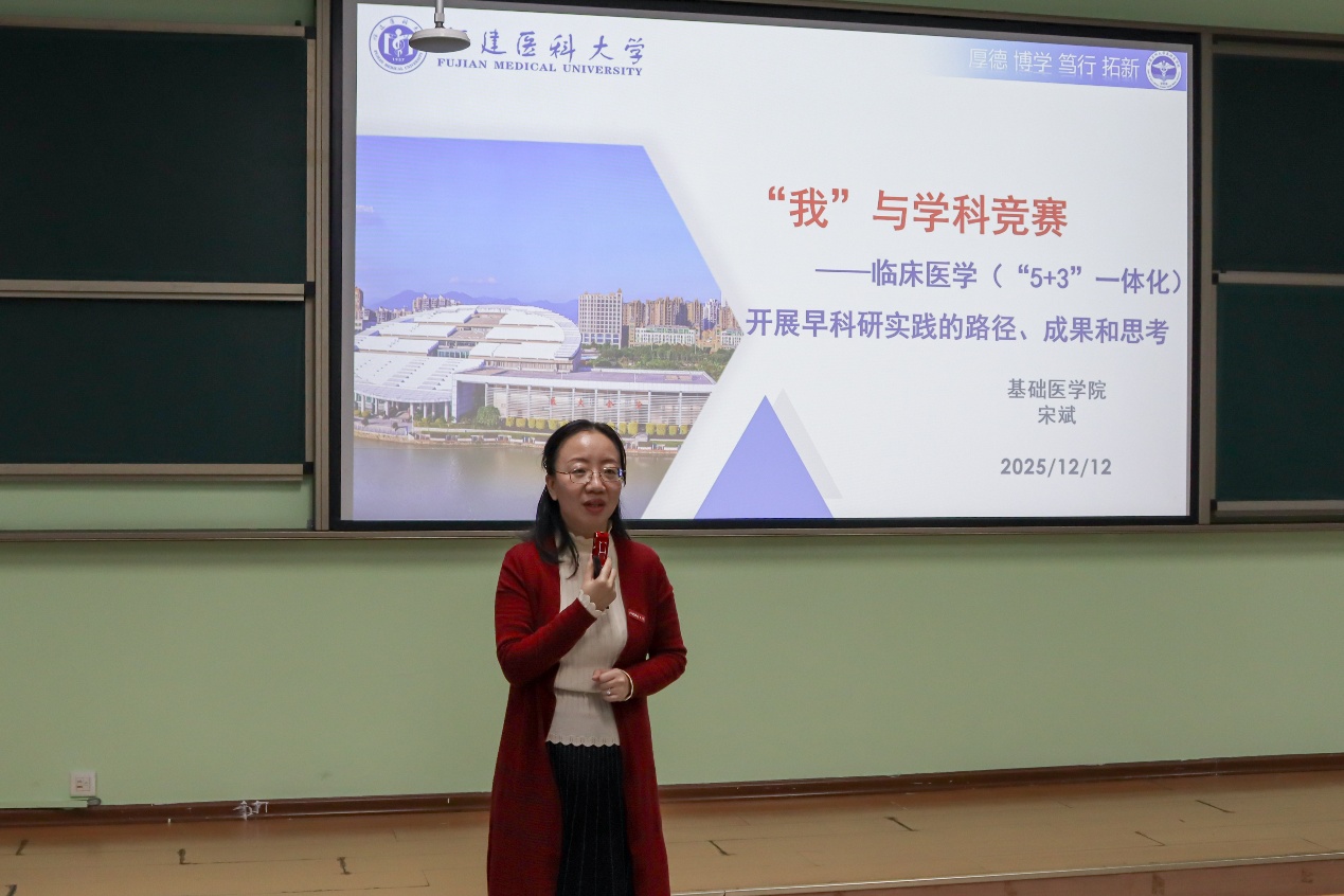 12月12日下午,足球资讯 《教授助你成才》(第14期)活动在旗山校区59教顺利举办。本次活动邀请福建医科大学国际合作与交流处副处长、港澳台事务办公室副主任、海外教育学院副院长、留学生工作办公室副主任、人体解剖学系宋斌副教授主讲。宋斌老师作为我校全国医学创新大赛暨“一带一路”国际竞赛和全国大学生生命科学竞赛校管理员,获评两大赛事“全国优秀管理员”,同时也是全国医学创新大赛国家铜奖队伍指导老师,大赛组织和指导经验丰富。足球资讯 2025级临床医学(“5+3”一体化,含儿科学)专业全体学生和教师代表共180余人参加。